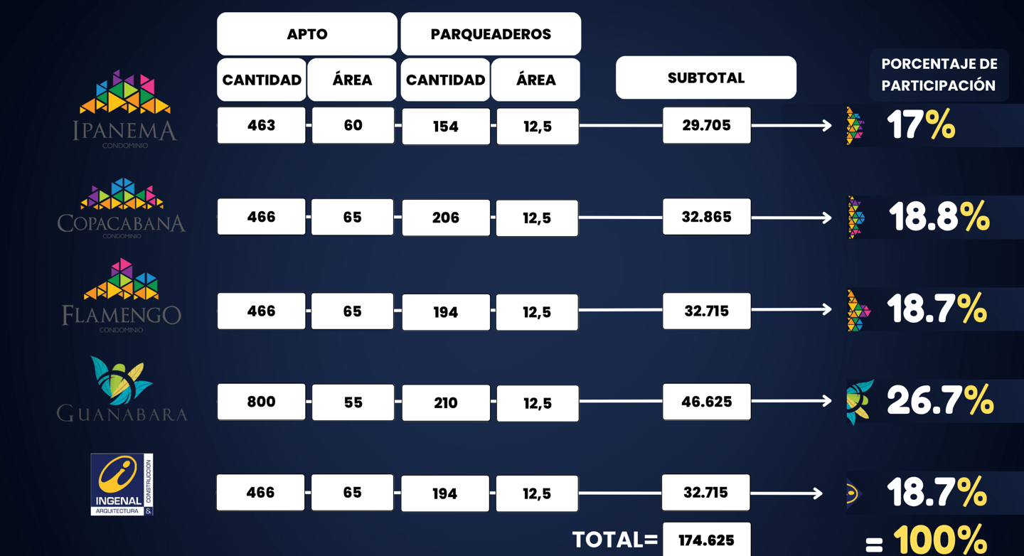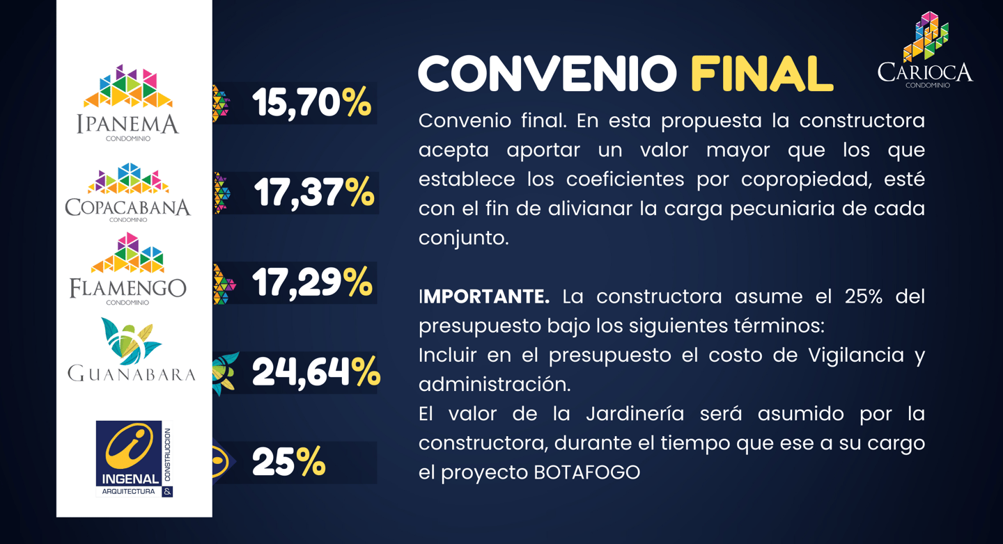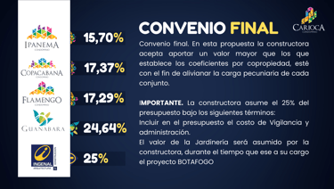 Estos porcentajes fueron estudiados con la participación de los representantes legales de cada condominio.